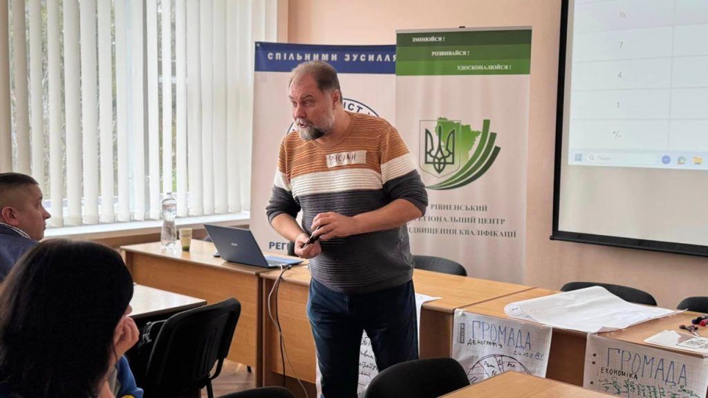 На тренінгу відпрацювали навички формулювання «дерева проблем» та 3-х рівнів результатів, ознайомлення з інноваційними методами дій на прикладі проєкту «Ділимося Хлібом». Руслан Краплич, який проводив навчання, надав інформацію про чинні конкурси грантів, серед яких, щойно оголошений конкурс мікро-грантів Фундації імені князів-благодійників Острозьких та Глобального фонду для фондів громад.