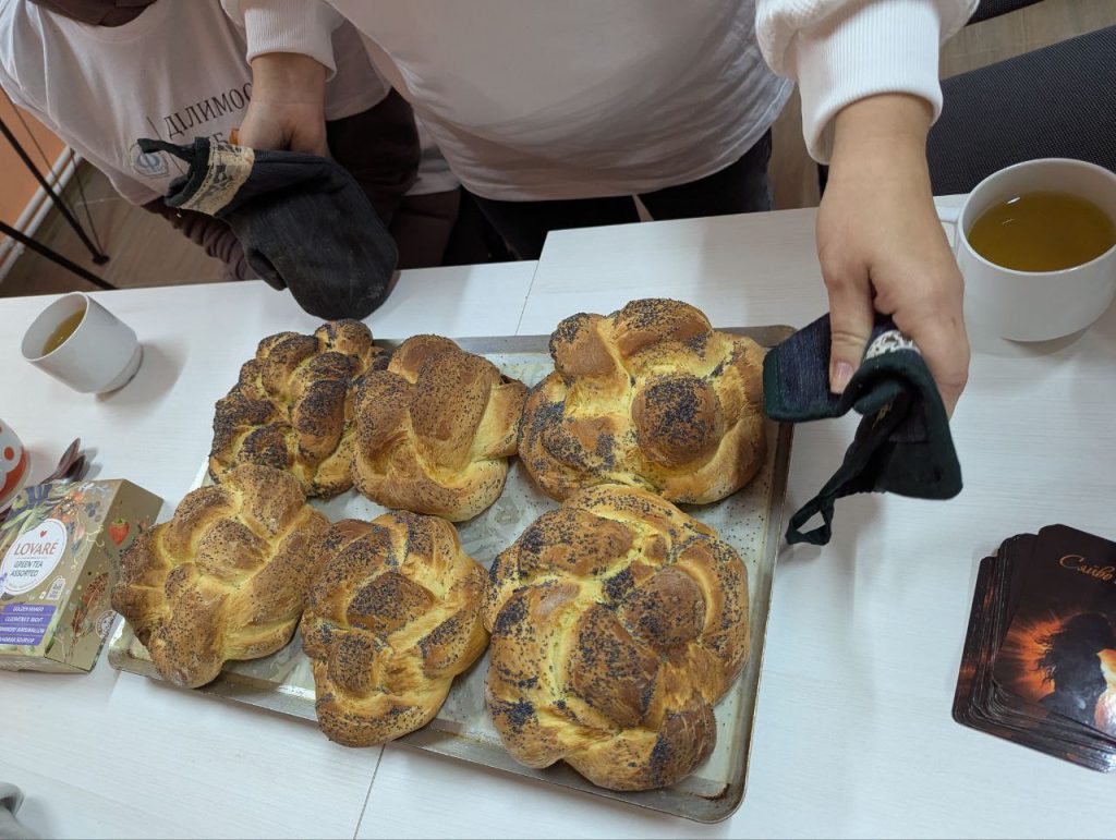 08 січня 2025 року у   затишній  залі ГО «Сонячний промінь» м. Костопіль 10  дружин військовослужбовців пекли калачі з маком і цим Хлібом ділилися з родинами, що виховують особливих дітей в рамках програми «Ділимося Хлібом», ініційованій Фундацією імені князів-благодійників Острозьких за підтримки Костів Асосіейтес, ІСАР Єднання та Фонду ім. Чарльза С. Мотта.