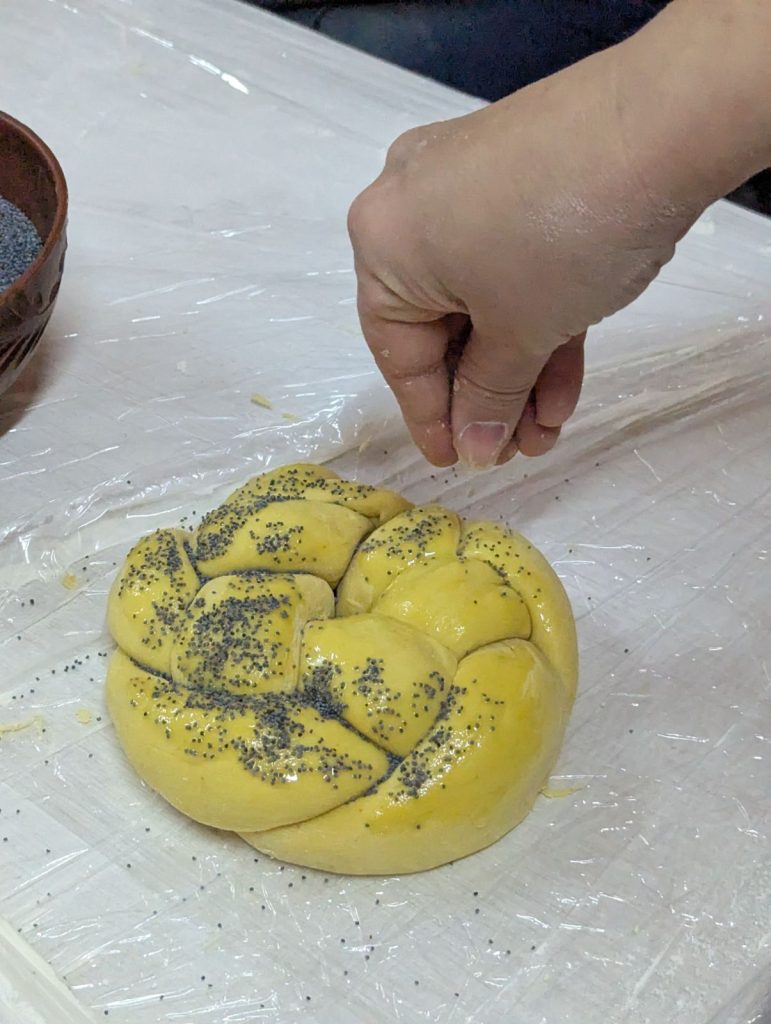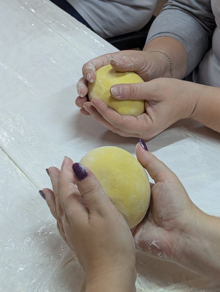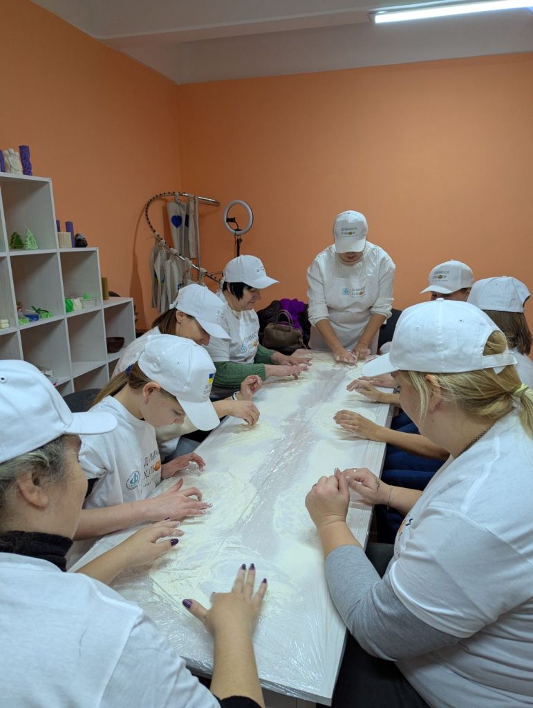 Малюючи по борошну вони знайомилися та пояснювали: що означає, для кожної з них, поділитися Хлібом з незнайомою людиною? Замішуючи тісто у спільному казані вони висловлювали добрі побажання та вкладали любов у кожну хлібину, яку своїми руками формували, вкладали у піч і після випікання частували одне одного свіжою випічкою, частину якої, крахтових паперових пакетах приносили додому, щоб поділитися зі своєю родиною. А частину передали своїм потребуючим сусідам.