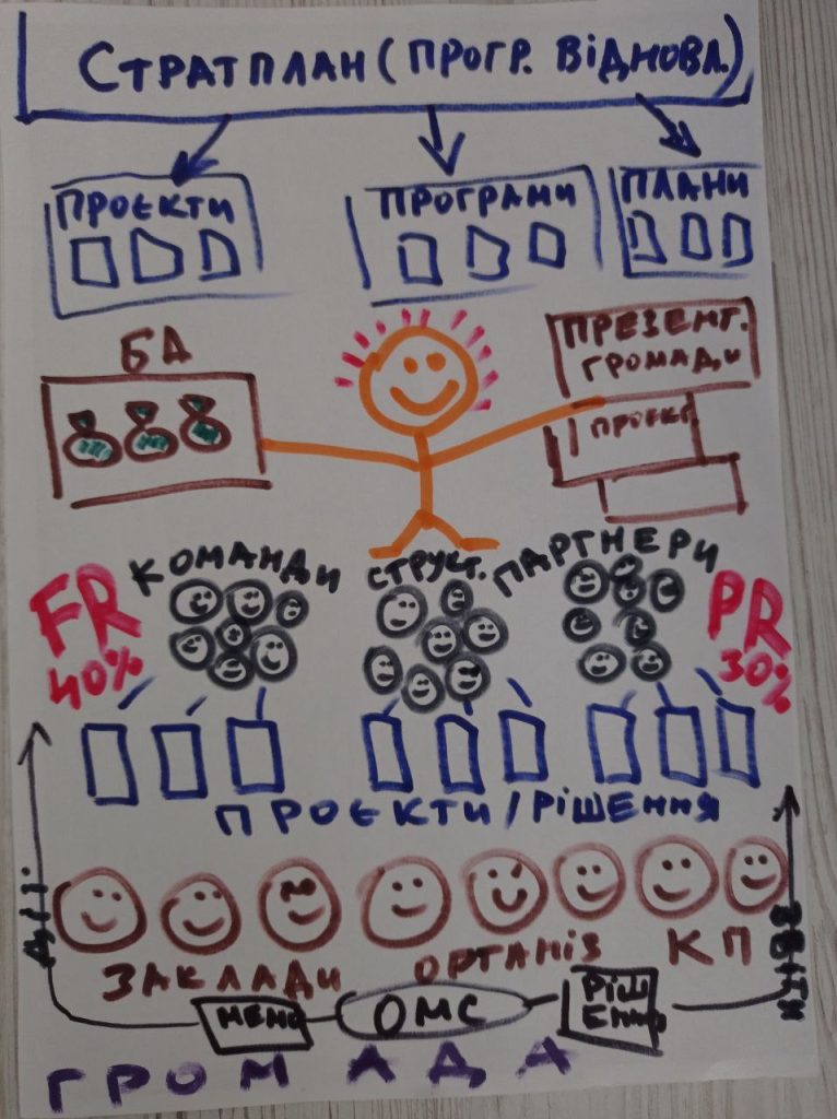 Під час заходу, учасники обговорили основні елементи майбутніх фандрейзингових стратегій (планів) громад, ключові виклики, з якими стикатимуться громади при реалізації грантових проектів та можливості систематизації зусиль по залученню коштів від різних донорів.