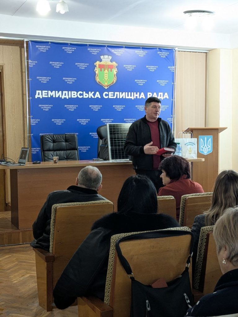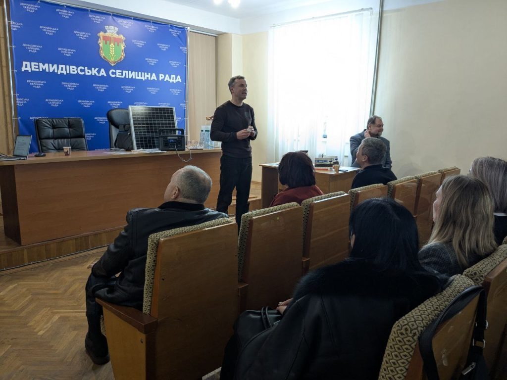 11 лютого 2026 року у Демидівській громаді відбувся Форум присвячений питанням енергоефективності та розвитку енергонезалежності громади. Захід об’єднав 37 представників місцевої влади, фінансових установ і зацікавлених мешканців, а також представників сусідньої Боремельської громади, які прагнуть впроваджувати сучасні енергетичні рішення вже сьогодні. Організаторами виступили Рівненське відділення Асоціації міст України (Тетяна Грещук) та Фундація імені князів-благодійників Острозьких (модератор Форуму енергонезалежних громад Руслан Краплич) за підтримки ІСАР-Єднання та Фонду ім. Чарльза С. Мотта, а також Демидівської селищної ради, від імені якої виступив Демидівський селищний голова Сергій Радченко, розповівши про ефективність його домашньої сонячної електростанції, що приносить пасивний дохід його родині від продажу елетроенергії за «зеленим» тарифом.