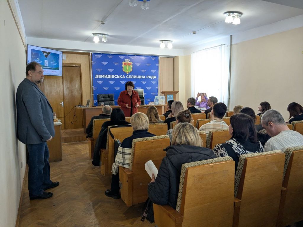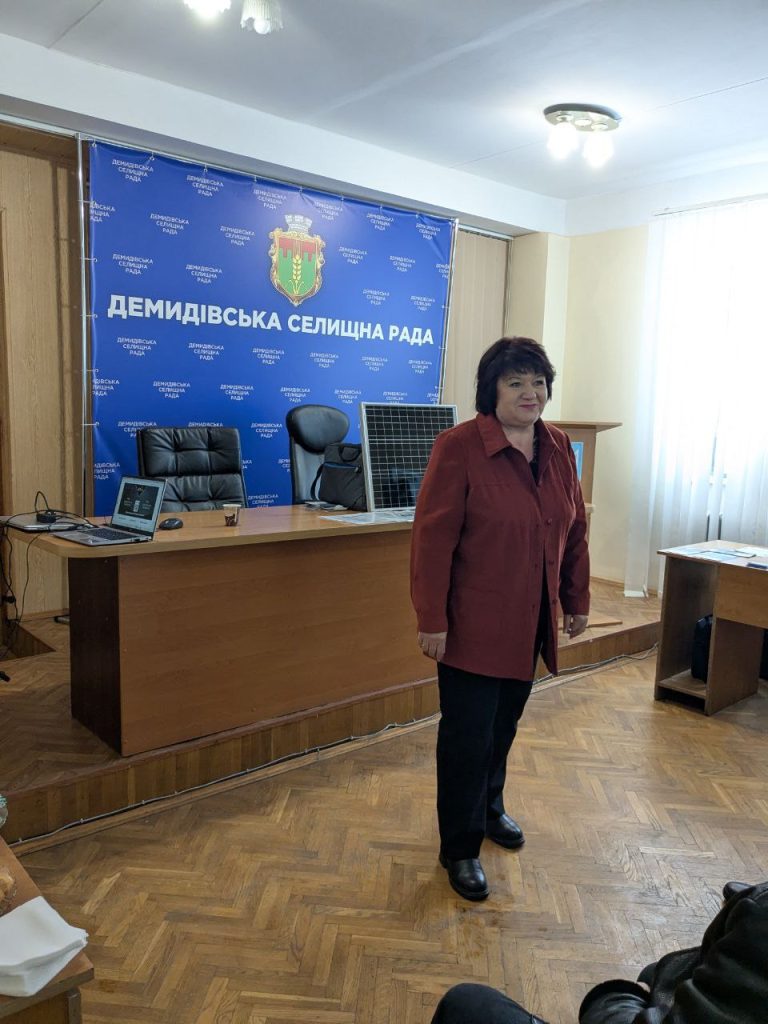 Окрему увагу під час зустрічі приділили фінансовим можливостям для населення та бізнесу. Керуюча Демидівським відділенням АТ «Ощадбанк» Галина Старчук поінформувала учасників про банківські програми підтримки енергоефективних рішень. Зокрема про видачу за перших 1,5 місяці 2026 року 8 кредитів на спорудження власних сонячних електростанцій під 0% для 8 домогосподарств у сумі до 480 000 грн кожна із позик. «Ми донесли інформацію про можливості від банку. Щодня надаємо консультації та регулярно видаємо кредити для населення», — підкреслила вона.
