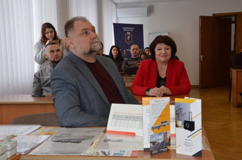 Наразі в Україні діють програми пільгового кредитування для встановлення сонячних електростанцій — для бізнесу та приватних домогосподарств. Представники банківських установ — Радивилівського відділення АТ «Ощадбанк» та Рівненського відділення «Глобус Банку» — ознайомили учасників із актуальними програмами кредитування та умовами фінансування енергоефективних проєктів.